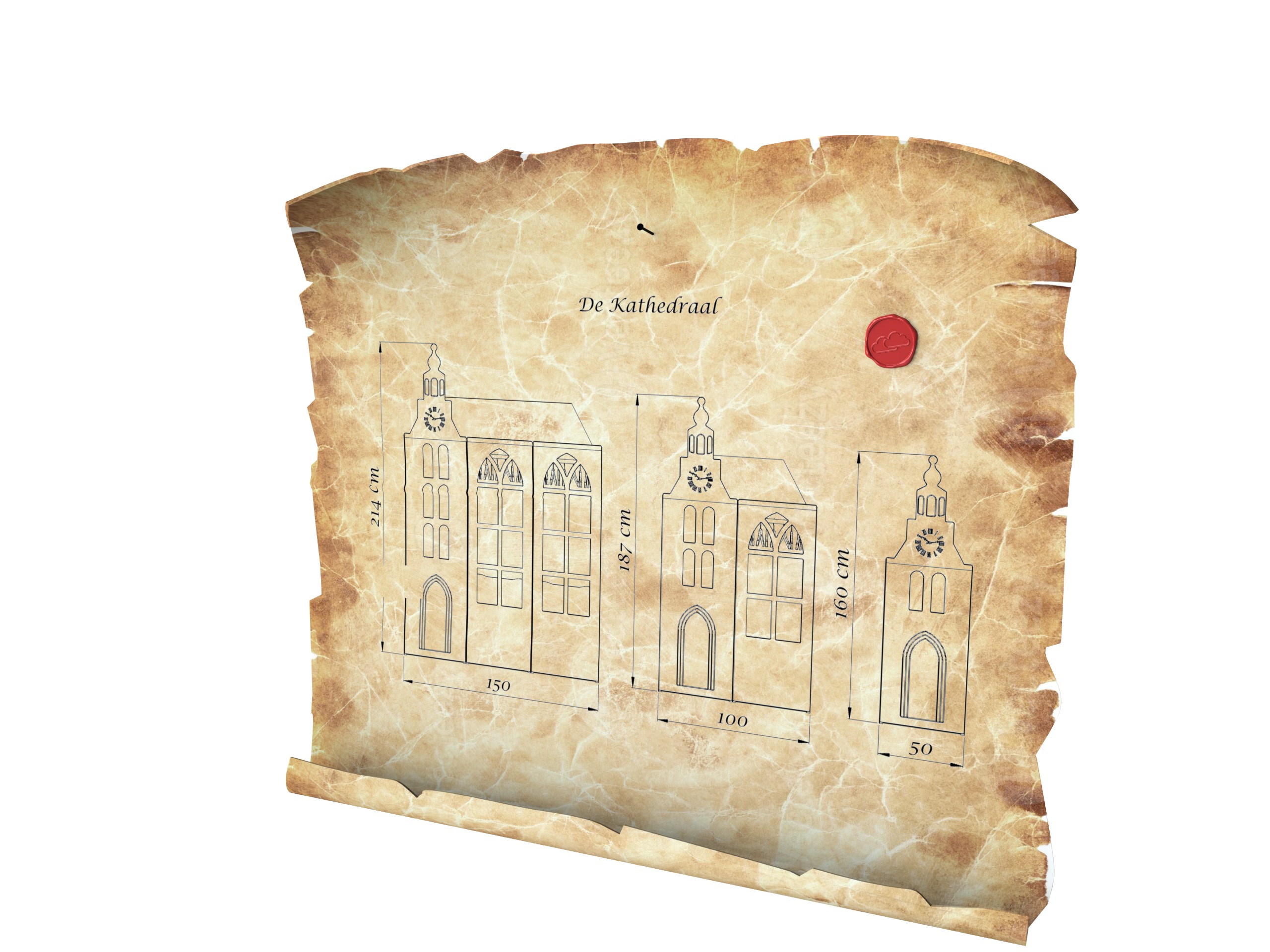 In een oude ‘stad’ kan natuurlijk geen kerk ontbreken. Deze kledingkast, ‘De Kathedraal’, genaamd is beschikbaar in drie verschillende groottes en is modulair.